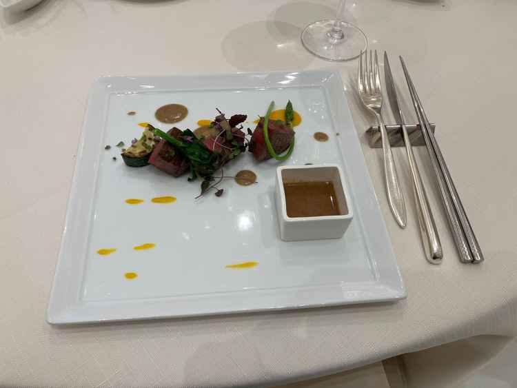 お肉が柔らかくて美味しかったのと、パンも焼きたてで美味しかったです。 オープンキッチンが披露宴会場にあり、温かいお食事が適切なタイミングで配膳されるので当日もゲストみんなが美味しくいただけそうです。