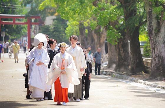 美しい情景に包まれる鶴岡八幡宮での挙式