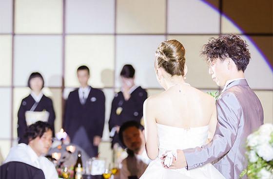 ≪当日のお客様の感想より≫ 自分たちが主役ということで普段一緒に働いてる職場仲間や友達から注目を浴びるという事は緊張しましたが、感動を与えられるような式ができて本当に良かったと思っています。