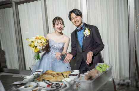 二人の頻繁に行くお出かけ先は原宿。結婚式を通してお二人らしさをゲストに感じていいただくために、料理を絡めた演出を二つご提案。一つ目はタピオカセレモニー。ウエディングケーキの代わりにタピオカが入った瓶にミルクティーを新郎新婦が注いで完成というセレモニーを実施。二つ目はデザートブッフェの際に、クレープをゲスト自身が巻けるようにご用意!当日は悩む!!という感想も!!