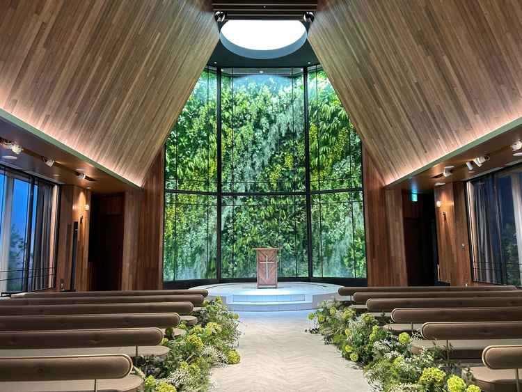 期待していたチャペルがフェイクグリーンや自然光ではなくライトだったために、個人的には想像と全く異なる結果でした。