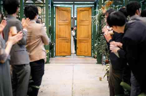 ご家族様にもお席からゆっくり見守っていただき、おふたりから想いを届けることを大切にしたセレモニー。 ダーズンローズでは、ゲストの皆様からお花と想いを受け取り、おふたりからはお手紙をお渡ししました。意味付けされたお花を大切におふたりの元に運び、メッセージを受け取り、涙したりはにかむ姿もとても印象的です。