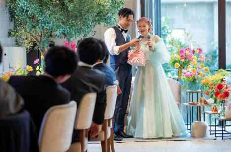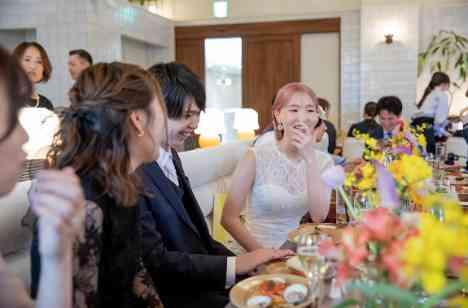 パーティーはシンプルにお食事を楽しみたい!そんな想いから、イベントなどはシンプルにして、友人席に一緒に座って食事をする時間に。新婦様はフルコース全てお召し上がりに♪ 大事にしたのは「ゲスト紹介!」大事な友人を招いたおふたり。お互いの友人同士も仲良くなれたらいいね!そんな想いからゲストをグループごとに紹介。「話に上がっていた子はあの子なんだ!」と交流が生まれていました^^