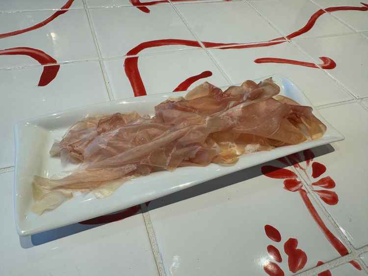 厚さ違いの生ハムを数枚試食させてもらいました。 フワフワで、すごく美味しかったです。