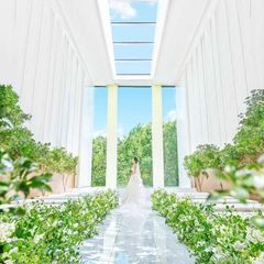 天井高12mから自然光が降り注ぐ明るいチャペルでは、挙式当日がイメージできる感動入場体験を行っていただけます。自然光が白亜の大理石に映りこみ、ゲストの皆様の記憶にも残る特別な空間。是非ご体感を♪
