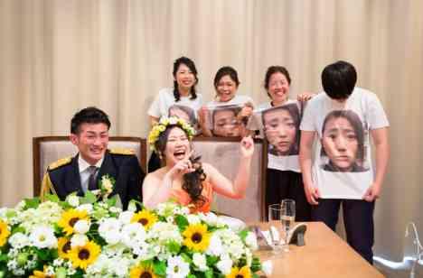 ウエディングケーキにはチョコペンとアイシングクッキーでひまわりをいれてオリジナルに♪フォトラウンドの際には、皆様との写真撮影を楽しんでもらえるように、おふたりのためにサプライズでひまわりをご準備!皆様も自然と笑顔が溢れ、話しに華が咲くとても素敵な時間でした。皆様との写真撮影や、お話がたくさん出来るように司会の方とも相談を重ね、進行にもこだわったことで、思い描いていた結婚式になりました。