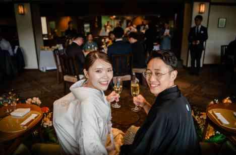 沢山の式場を見学する中で見つけた、おふたりの故郷、奈良の菊水楼。大好きな友人と会話できる時間をゆっくり設けたい、そんな想いで選ばれた会場は友人との距離が近くおふたりのメインソファ席には絶えず人が集まる幸せな時間となりました。今までどんなときも一緒に過ごしてきたおふたりにとって夫婦の一歩を踏み出すための夢のような1日となりました。