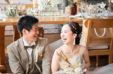 いつも明るく笑いのたえないお二人の空気感を、なにより大切に進めてまいりました。 結婚式への想いは「自分たちらしくゲストとおもいっきり楽しみたい」ということ。毎週休日も「夫婦でのルーティン」があり、ご見学当日もルーティンを終えて来られた愉快なお二人。 そんな「いつもと同じ日々の中に、いつもと同じ2人とゲストが過ごす特別な1日」がご提供できたらと、テーマをご提案しております。