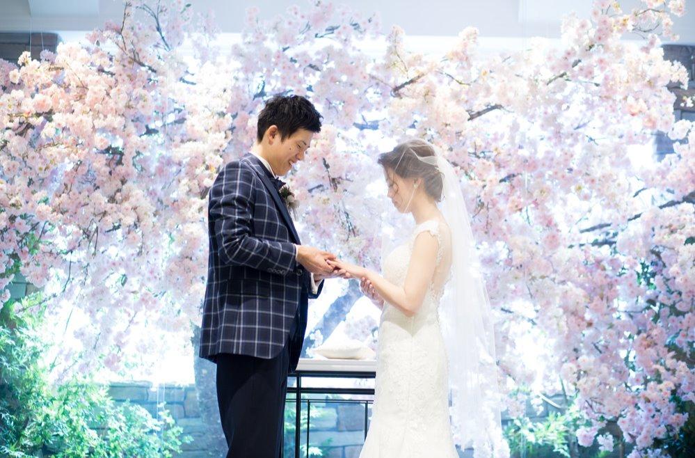 桜を見るたびに、結婚式の温かい空間や雰囲気を思い出してもらいたい そんな想いから温かみあふれる桜のチャペルで、ゲストのみんなと創っていく人前式を選ばれました