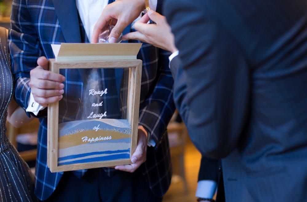 ご友人様がとっても多いというわけでは無い新郎新婦様 結婚式には、お二人にとって本当に大切な方々をご招待してのご結婚式 だからこそみなさんとの絆を確かめるために、ゲストから頂くサンドを基にサンドアートを作りました