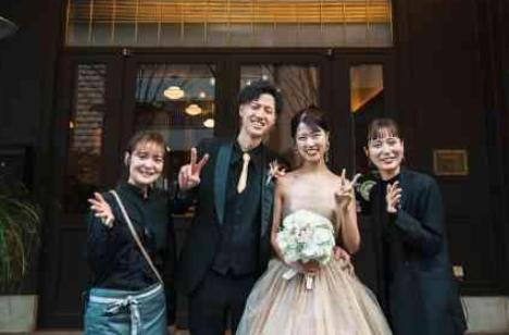 ゲストの皆様とのお時間は勿論、おふたりがお写真を撮れる時間も確保しながら一日を過ごしていきました。おふたりのお気に入りスポットはInStyleweddingKYOTOのエントランス!ニューヨークのホテルを思わせるシックでクールな入口で、笑顔溢れるおふたりのお写真撮影を実施しました。ゲストの皆様をお出迎えする場所での素敵な時間でした。