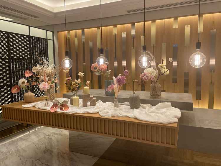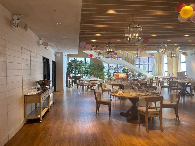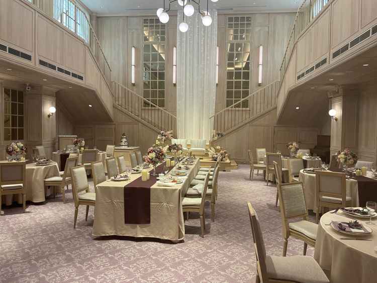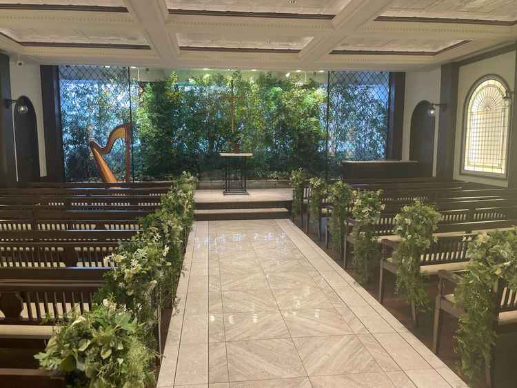自然の豊かさを感じられる式場と披露宴会場でした。特に式場では、春や秋のシーズンによってバックの木が変化することも素敵な特徴でした。