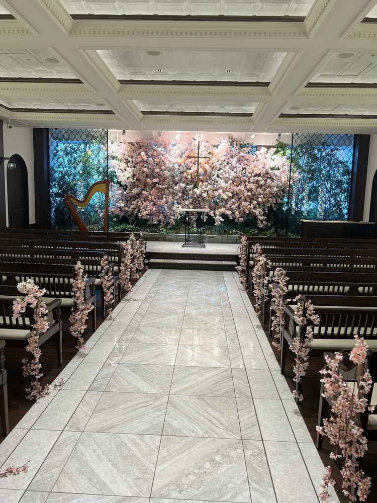 披露宴会場が2つあり、どちらも違ったテイストでとてもオシャレだった。待合室も広くオシャレで、チャペルも四季折々で花が変わるという楽しみがあってよかった。