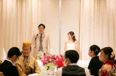 人と違う事がしたい!とお打ち合わせでお話してくださったお二人、ローストビーフ入刀を提案させていただき、入刀後はゲストの皆様へメイン料理と一緒に提供★珍しい演出にゲストの皆様も大盛り上がり! また、余興ではご新郎様の家族からゲストの皆様へ歌のプレゼント♬ お母様がピアノの演奏、弟様が三線を演奏、妹様とご新郎様が歌を歌ってくださり、会場内が一つになったお時間となりました♬