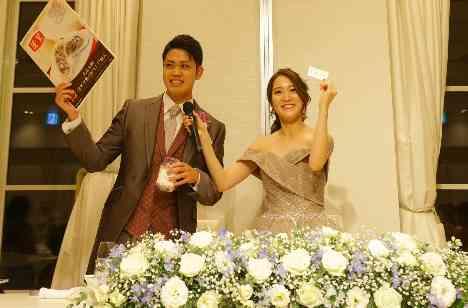 お二人のご結婚式はゲストの皆様も主役です★ 挙式では、ご新婦様の姪のお子様にリングガールを務めていただき、名前入りの押し車を押して歩く姿にゲストの皆様からも「がんばれーー」と声援が♡ 大階段では、ゲスト皆様に向けてプレゼントトスで大盛り上がり♪ そして受付時にクイズを用意していたお二人! パーティー後半では、正解の方の中からさらに抽選でプレゼントをご用意され、大盛り上がりでした(^^)