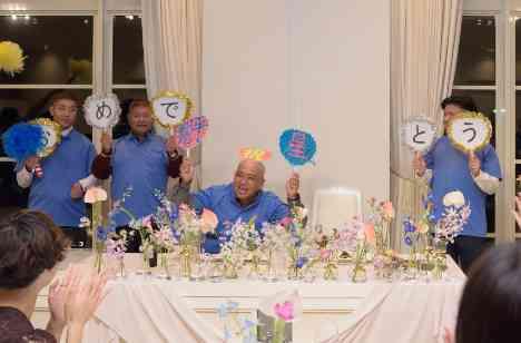 前半戦からおふたりのご用意されたしゃもじを使ってのケーキバイトなど和気あいあいと披露宴が進みます。お色直し後はテーブル対抗の新郎新婦様クイズ!「え~こっちじゃない?!」などご意見が飛び交い、会話も弾みます♪結びは新婦ご親族様による愛情のこもったご余興とカチャーシー!!カチャーシーには幸せを“かき混ぜる”という意味合いもあり、ゲスト皆様で踊って大盛り上がりのフィナーレとなりました♡