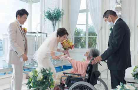 沖縄出身の新婦様のおばあ様。挙式直前にあいにくのご欠席となっていたものの、少しだならお越しいただけることとなり、急遽叶ったおばあ様とのファーストミート。チャペルに並ぶ晴れ姿のおふたりとご対面された瞬間、とても嬉しそうに笑顔を浮かべたおばあ様…♡県内では希少な、結婚式のためだけにつくられた貸切感のあるゲストハウスタイプのセントレジェンダ沖縄だからこそ生まれた、心温まるシーンとなりました。