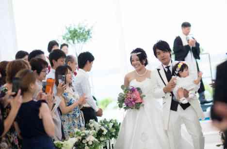 1歳になったばかりの可愛いお子様がいらっしゃったおふたり☆挙式はお子様にも参加いただきました!真っ白なチャペルを選択されたご新婦様はブーケにリゾートのお花を取り入れたオーダーブーケをお持ちになられました☆ ゲストもかりゆしウェアやカラフルなワンピースでご参列くださり、アットホームな雰囲気で挙式が進みました♪