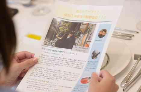 ゲストの皆様に楽しんでいただきつつ、おふたりを知っていただく機会にもされたいと仰っていたおふたり。披露宴会場に入るとゲストの席には新聞が。おふたりの紹介を新聞風にアレンジしたプロフィールブックに!両家が集まる結婚式だからこそ、新郎家は新婦様を、新婦家は新郎様をより一層知っていただくゲストへのプレゼントでした♪