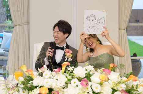 おふたりが披露宴でご用意したゲストの皆様に楽しんでいただくためのイベントのひとつが「似顔絵大会」でした!ゲストの皆様がテーブル対抗で新郎新婦の似顔絵を描き、どのテーブルのチームが一番似ているかを競うイベント。おふたりを知っていただく機会にもなれば、ゲストの皆様が楽しんでいただける機会にもなる最高のイベントとなりました!