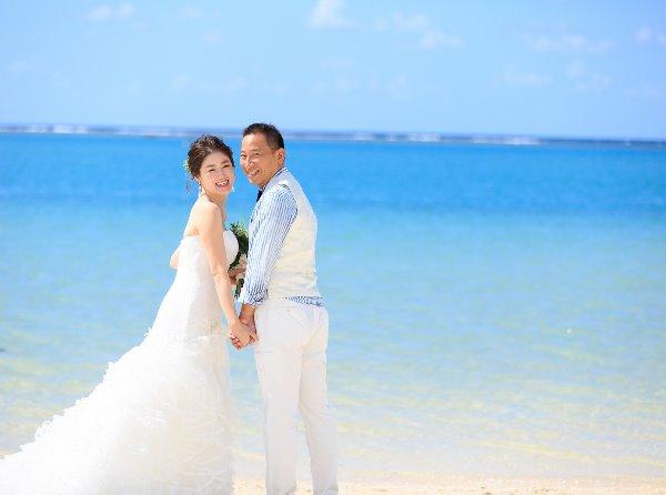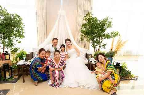 県外ご出身のお二人はご新郎様のお仕事の関係で沖縄へ。 憧れのリゾートウエディングを叶えるために、お二人にとって大切なゲストを県外から招待し、親族のお召し物もリゾート風に揃えてご参加いただきました。沖縄ならではのお料理でのおもてなしや、ゲストに楽しんでもらえるよう、会場コーディネートにこだわりました。パーティーでのイベントなどはあまり組み込まずに、ゲストとお話できる時間をたくさん作りました。
