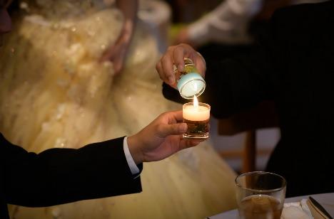 披露宴前半はアットホームな空間でお料理やゲスト同士の会話を楽しめるようにし、後半のキャンドル演出時には各卓を回りながら私達で選んだボタニカルキャンドルへ火を灯しに行くことで、ロマンチックな雰囲気の中で改めてゲストの方々へ感謝の思いを伝えることができました。その中でもゲストの方々に肩ひじ張らずにリラックスしていただける演出づくりを意識しました。