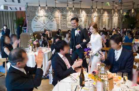 大人数での会食自粛要請が続く中、やっと挙式できる状況になってきたので、開催を決めました。そんな状況だったので、私たちの式がみんなにとって久しぶりの大宴会になるのではと思い、開放的で、カジュアルに、とにかくみんなでワイワイ楽しくできる雰囲気の会場を探していました。それにマッチしたのが、ロサンジェルスバルコニーさんでした。