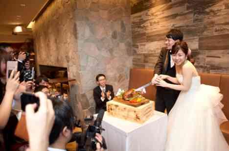 ケーキの代わりに登場したのは、こんがり焼けたローストチキン!珍しい入刀&ファーストバイトに、ゲストからたくさんのカメラが向けられました。また、新郎が新婦にサプライズした時の動画もゲストの話題に。愛を込めてギターの弾き語りをしたのですが、緊張でうまく歌えずみんな大爆笑されました。でも結果として盛り上がったのでよかったです!