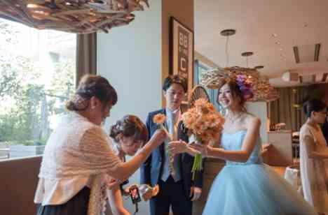 お色直し後の登場時に、メッセージを添えた一輪のお花をゲスト全員に手渡し、女性は髪、男性は胸につけてもらうという演出を企画していたんです。それが当日、入場して周りを見渡すと、ゲストの方々もお花を持っていました。実は、これは彼から私へのサプライズ! 私たちも一輪ずつお花を頂いて、それを最後に花束にして彼が手紙とともに私にプレゼントしてくれたんです!凄く驚きましたが、嬉しかったです!