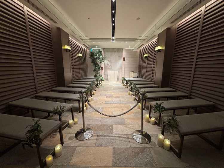 室内挙式会場の照明が暗めから明るめまで好みに合わせて調節できるのが良かった。暗めの挙式会場はあまり見たことなかった。