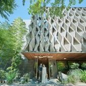 木や石など自然素材の質感を活かしたモダンな魅力。通り抜ける光や風の心地よさと、外からの視界侵入を防ぐ機能性を兼ね備え、伝統建築の「立体格子」を用いた独創的なデザインは他には無い大人の感性を刺激する