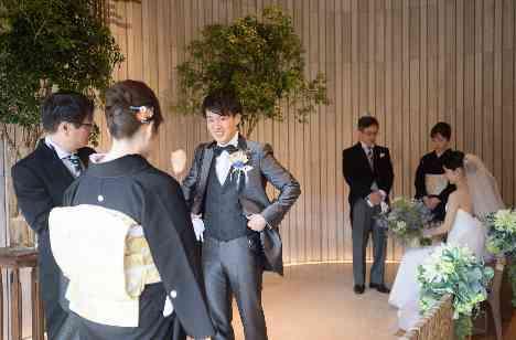 今まで大切に育ててくれた親御様へ感謝を伝えるためにおふたりが選んだのが”ファミリーミート”。 挙式が始まるとなかなかゆっくりとお話することができないため、挙式の前のお時間を使って親子水入らずの空間をご用意しております。 立派に成長されたおふたりの姿を見て晴れやかな表情をされる親御様と、感極まってうっすら目に涙を浮かべるご新婦様。