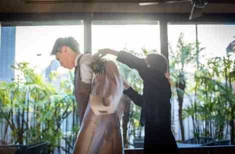挙式では、ご新郎お母様によるジャケットセレモニーが行われました。 ご新婦様がお母様に最後のお支度としてベールダウンをしていただくシーンは多くの方がご存知だと思います。 今回はご新郎様も最後のお支度として、今まで大切に育ててくださったお母様に、ジャケットを着させていただきました。 「いつの間にかこんなに大きくなったんだね」とお母様も嬉しいような寂しいような、心温まる瞬間です。