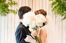 多くの人に支えられたことを実感した、温もりと笑顔いっぱいの挙式でした。 緑・光・水の癒しに包まれるチャペルには自然光が満ち、あふれる笑顔がさらに輝いた挙式。 “感謝”“信頼”など1輪ずつに意味が込められた芍薬が12名のゲストから新郎へ渡されると、それを花束にして新婦へ。それぞれの想いが詰まった世界でひとつだけのブーケとともに誓い合い、思い入れ深いひと時が叶った。