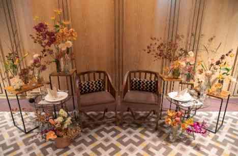 装飾は専属のフラワーデコレーターとお打合せを行います。フランクな雰囲気と上質さを掛け合わせた空間を造り上げていくために、暖色系のお花に赤い実の枝ものを加える事で、初秋の雰囲気も感じられる装飾になりました。ゲストが気兼ねなく新郎新婦へ近づけるチェアスタイルで仕上げ、テーブルの隔たりが無く、挙式披露宴共にゲストのすぐそばで過ごすことができました