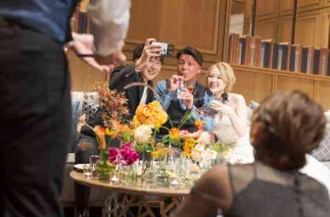 後半は演出を盛り込まず、大きなソファスペースを使って友人たちと話したり、写真を撮ったりできる時間を取り、まさに「フランク」な雰囲気で過ごしていました 沢山のゲストがドリンクを片手に遊びに来てくれて、久しぶりに会うゲストとの思い出話や、仲のいいゲストともいつもより特別感ある雰囲気の中で盛り上がりました