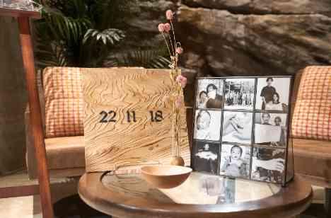 ウェルカムスペースにはお子様とおふたりの軌跡を辿るお写真をあしらったボードがお出迎え。秋色のカラーも意識して大人っぽいテイストに。THE TENDER HOUSEの披露宴会場には専用のホワイエスペースが。そこには自由に飾れるスペースもありますが、全てを装飾せずに一部にアイテムを置く方がほとんど。それほど作り込まれた素敵な雰囲気なのでご準備にもお手間を煩わせません。