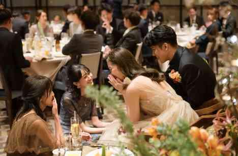 演出などは盛り込み過ぎずゲストとの会話や写真撮影をベースに進行組み。せっかくの大切なゲストたちが参列してくれる結婚式だからこそいろいろやりたいこともおさえつつ、ゲスト目線で、お料理を楽しんでもらうことや、ゆっくりと会話ができたり、距離の近さを大切に考えたご結婚式に。ゲスト満足度をとても考えてくださったおふたり。