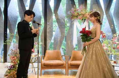 再入場後には1卓毎にゲスト1名代表者へバラの花を託し、おふたりが1本ずつ受け取りながらのラウンドで、ダーズンローズのセレモニーの実施。「なぜこのゲストを選んだのか?」のご説明はご新郎様がマイクパフォーマンスをしながらゲストをご紹介。そして最後に集めたバラの花束をご新郎様からのサプライズのお手紙と共にお渡しする演出。ゲストからは思わずため息がもれるほど。