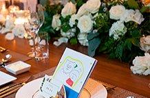 新婦の自作の絵本のサプライズで、新郎もゲストも心がほっこりウェルカムスペースには思い出の写真やエンゲージシューズ、新婦友人から贈られた似顔絵を飾り、ゲストをお出迎え。サプライズで新婦が作った絵本が新郎の席と各卓に置かれ、温かな雰囲気になったそう。また、新郎が歌で参加したバンド演奏後に新婦へバラの花束を贈るサプライズ返しもあり、忘れられないひと時になった。