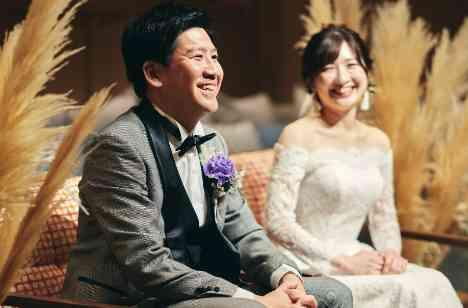 パンパスグラスやソファなどトレンドを取り入れた素敵な空間に。ゲストとの近さにこだわり、ソファスペースを取り入れることでアットホームな空気感と写真映えも両方叶えられる!フラワーコーディネートは専属のサンジョルディフラワーズのトップデコレーターが担当!おふたりの想いをカタチにし、特別な披露宴会場の空間を創り上げて。