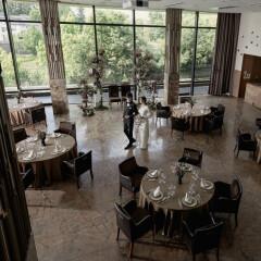 【タイプの異なる2つの披露宴会場】あやめ池を一望できるロケーション。テラスや階段など入場方法もお選びいただけるのはイリスならでは。それぞれタイプの異なる会場で、おふたりらしい自由な時間をご提案します。
