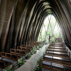 【イリスの見守るチャペルで神聖な誓いを】唯一無二の女神が見守る誓いの場で、柔らかな自然に包まれながらおふたりらしい誓いが叶う静謐なチャペル。キリスト式, 人前式.和婚式など様々なスタイルが可能です。