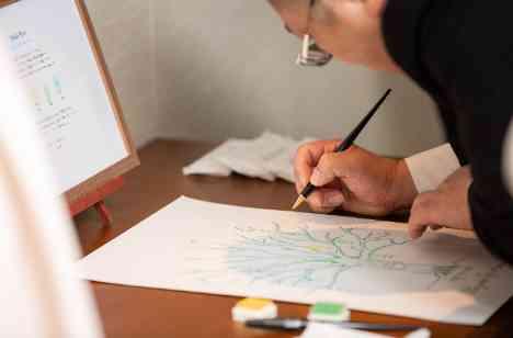 受付でゲストに署名と手書きの笑顔の絵文字を描いていただき、指で押印をしていただきました。ゲストの個性が溢れる結婚証明書に、披露宴中におふたりで仕上げを行いました。また「WeddingSmile」の台紙に描かれた木は新郎お母様の手描きのイラストで、世界に1つだけの想いが込められた証明書が出来上がりました。おふたりは「笑顔」でいることも大事なポイントだったので、皆で笑顔の花を咲かせることができました。