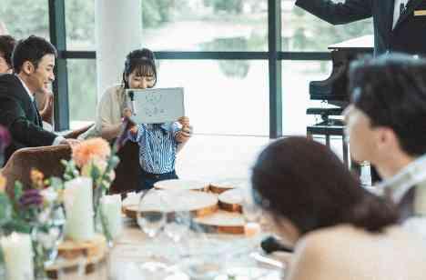 おふたりのことをよく知っているご親族のみのご結婚式だからこそ叶うオリジナルクイズ。おふたりが出会ってからの思い出や「好きな手料理は?」等おふたりだけが答えを知っている難易度の高いクイズ大会を開催しました。 テーブルごとに幼い頃のおふたりを思い出しながら考えていただき、回答時には旅行のエピソード等をご親族からもお伺いできとても和やかな時間となりました。