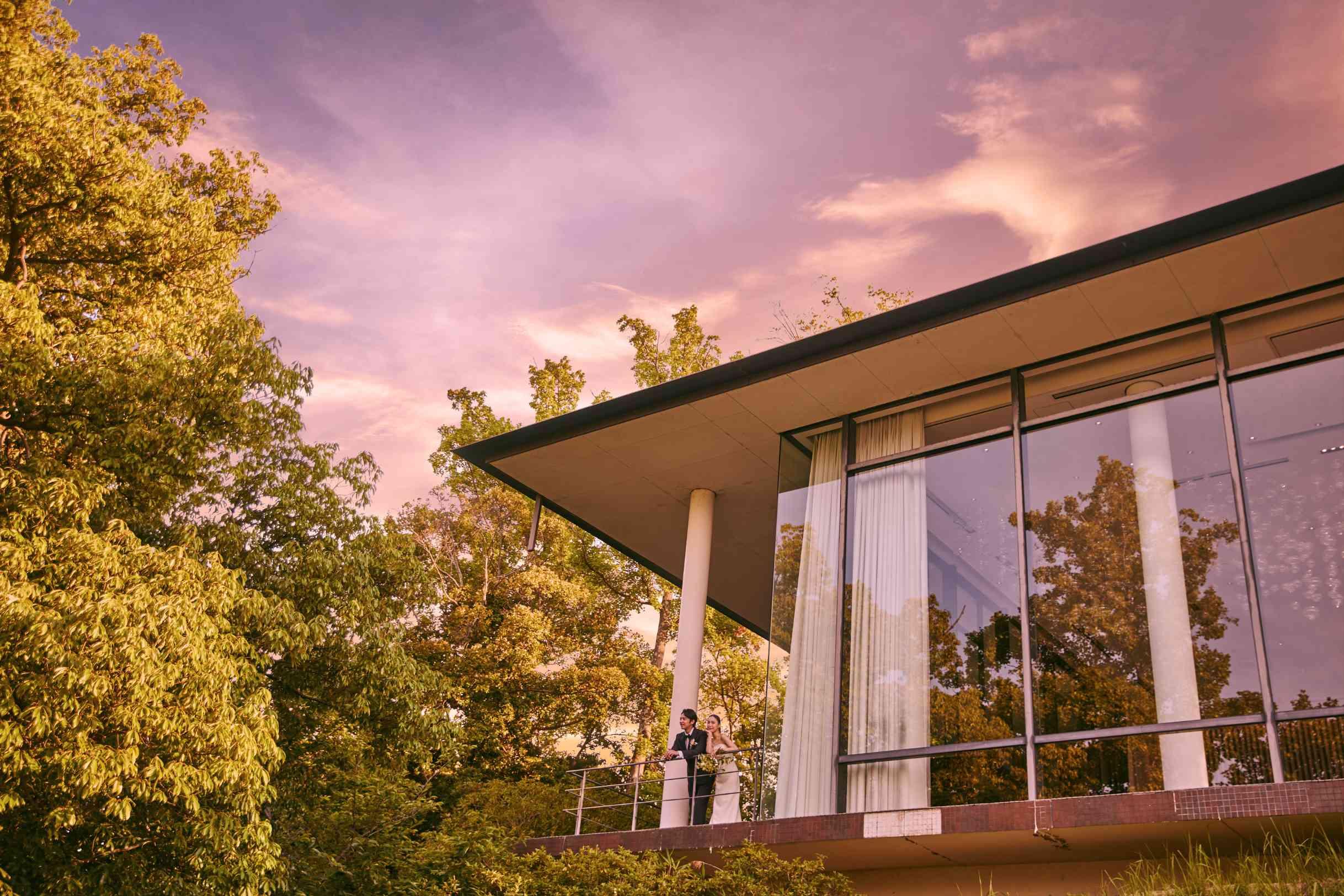 想出の場でもある「菖蒲池」の中心にそびえるイリスウォーターテラスあやめ池 特別な想い出を五感で感じていただけるよう おふたりにとって大切な皆さまのために感謝のお気持ちを大切に お料理でおもてなしします