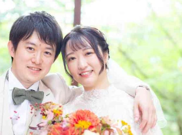 研究職のお二人。納得ができるまで一つのことを突き詰めることができ、それを誇りに思っている。美味しいものを食べること、楽しいことも大好き。一緒にいることでいつも安心できる。大好きな自然の中に身を置き、リラックスしながら、たいせつな人達と共に、美味しい、楽しい、ありがとう、大好きだよとたくさんの感情で心が一日をという意味で”満ちてゆく”というコンセプトをお贈りしました。