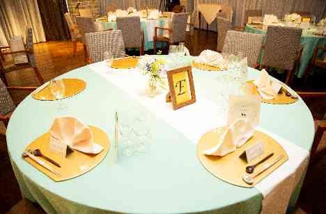 おふたりの大事な婚約指輪はティファニー。それにちなんで会場装飾はティファニーカラーを意識し、ブルーのテーブルクロスにホワイトのランナー!おふたりの大事な想い出がご結婚式の中で一つ一つのアイテムや会場の装飾などで彩られます♪プランナーはおふたりらしいご結婚式のご提案の為お打合せの中でおふたりのことをたくさんお伺いさせていただきます♪