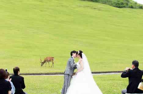 キャンプやアウトドアがお好きな新郎様。ヒルトップテラスにお越しいただき今まで見たことのないような若草山でのご結婚式に魅力を感じて下さいました。当日は快晴!心地よい開放的な空間で記憶に残る結婚式となりました♪鹿さんもお祝いにきてくれました!