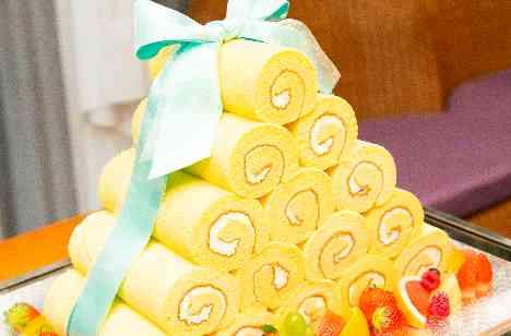 生クリームとフルーツがのった、丸いケーキ・・・ ウェディングケーキといえばそんなケーキを思い浮かべるのではないでしょうか。おふたりのウェディングケーキは今までにないロールケーキ!かわいらしいフォルムにゲストの皆様のシャッターも止まりません☆おふたりらしいご結婚式の実現のためにプランナーはもちろん、キッチンやパティシエ、サービススタッフなど、スタッフ全員で全力でお手伝いさせていただきます!!